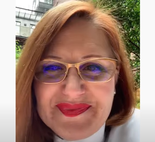 Rev. Macomb speaks at the podium regarding her work with baby blessing ceremonies. Watch now.